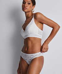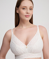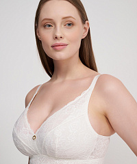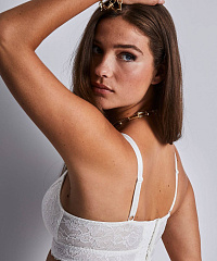 - Бюстгальтер украшен цветочным кружевом и золотистым шармом с кристаллом Swarovski
