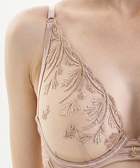 Линия Cosmic Romance приглашает к утонченной игре света и прозрачности, создавая образ изысканной и дерзкой женственности. Вышивка, вдохновленная изгибающимися лозами и переплетениями, придает белью ощущение легкости и воздушности, а мерцающие стразы и блестящие детали усиливают эффект сияния. Линия предназначена для женщин, которые осмеливаются сиять, быть свободными и уверенными в себе.