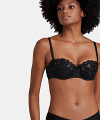 Бюстгальтер от бренда AUBADE выполнен из комфортного материала на основе хлопка. Модель украшена динамичной вышивкой с цветочными мотивами. Подберите в пару к бюстгальтеру трусы из той же линейки для создания готового образа.