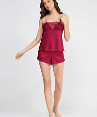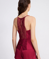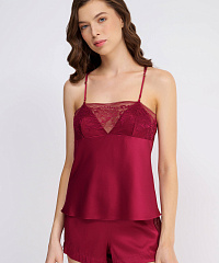 Шелковый пижамный топ с кружевом