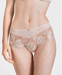 Трусы хипстеры от бренда AUBADE сочетают в себе комфорт и женственный дизайн. Модель украшена шикарной вышивкой с цветочными мотивами. В пару к изделию можно подобрать бюстгальтер из той же линейки для создания готового комплекта.